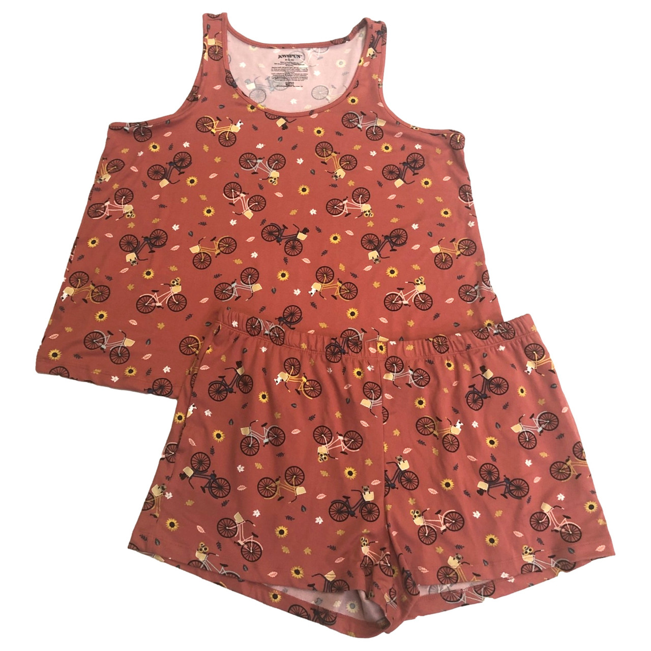 - Womens Orange Bicyle Themed Pajamas Bike Print Shorts Tank Top Sleep Set