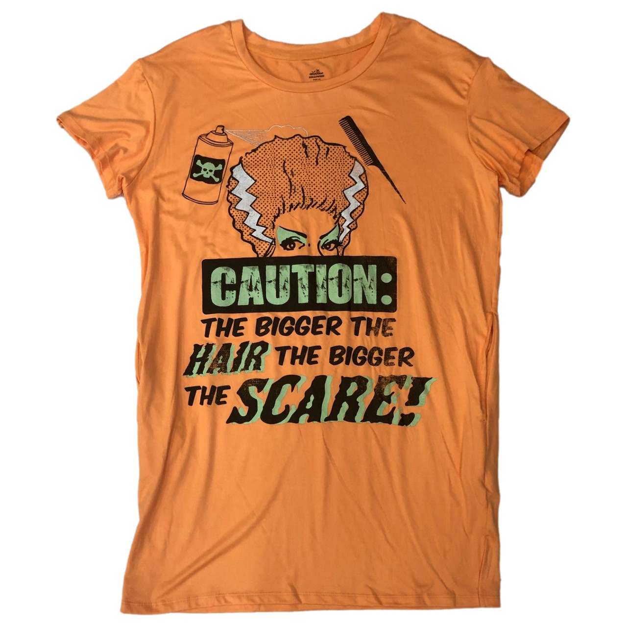 You will love wearing this cozy buttery soft orange "Caution: The bigger the hair, the bigger the scare" Halloween sleepshirt to bed!