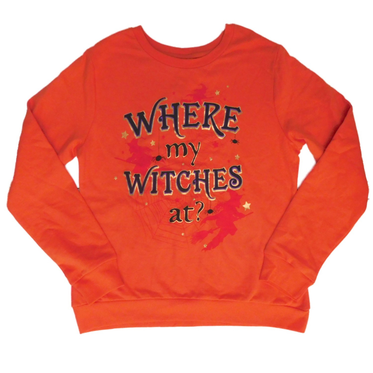 - Womens Orange Halloween Sweatshirt Where My Witches At Sweat Shirt
