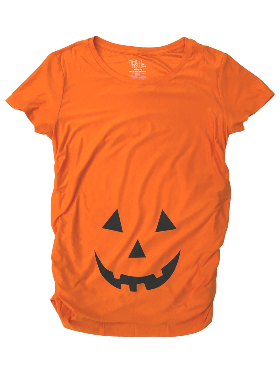 - Womens Orange Pumpkin Belly Maternity Halloween T-Shirt Tee Shirt