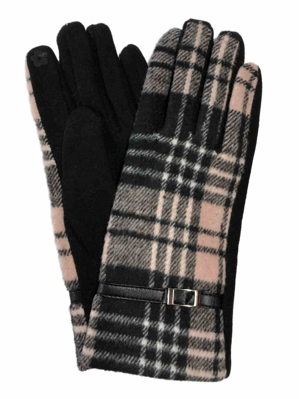 - Womens Pink & Black Plaid Belted Stretch Fit Texting & Tech Touchscreen Gloves