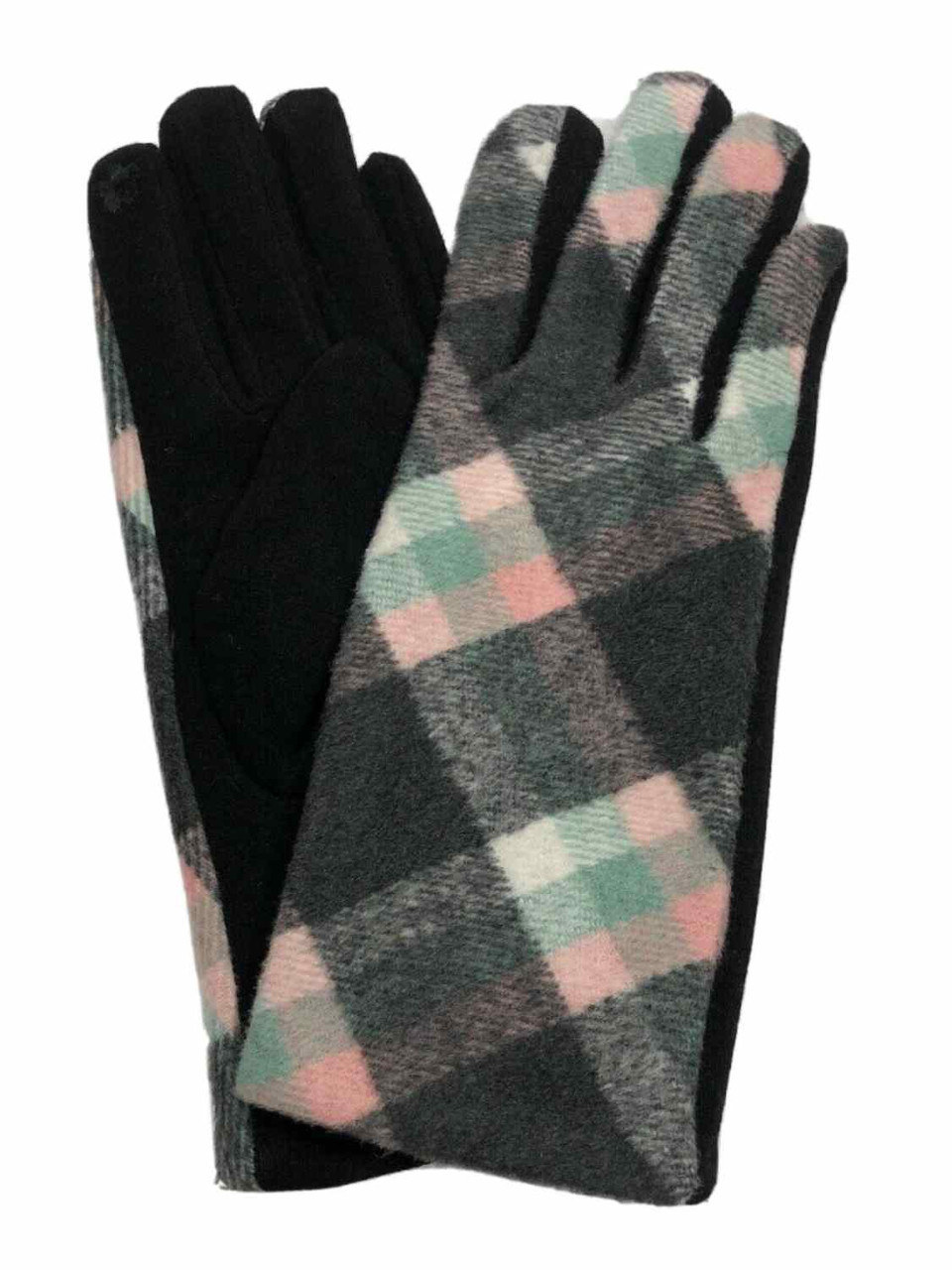 - Womens Pink Gray & Mint Plaid Stretch Fit Texting & Tech Touchscreen Gloves
