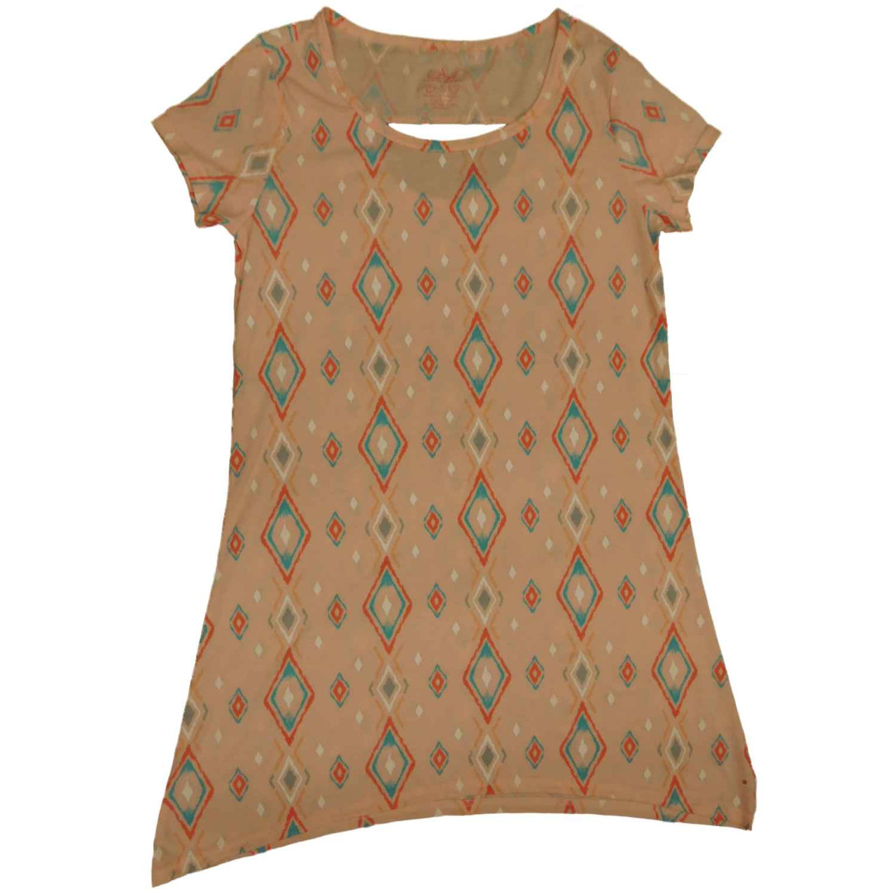 - Womens Pink Turquoise & White Diamond Sleep Shirt Slit Back Nightgown