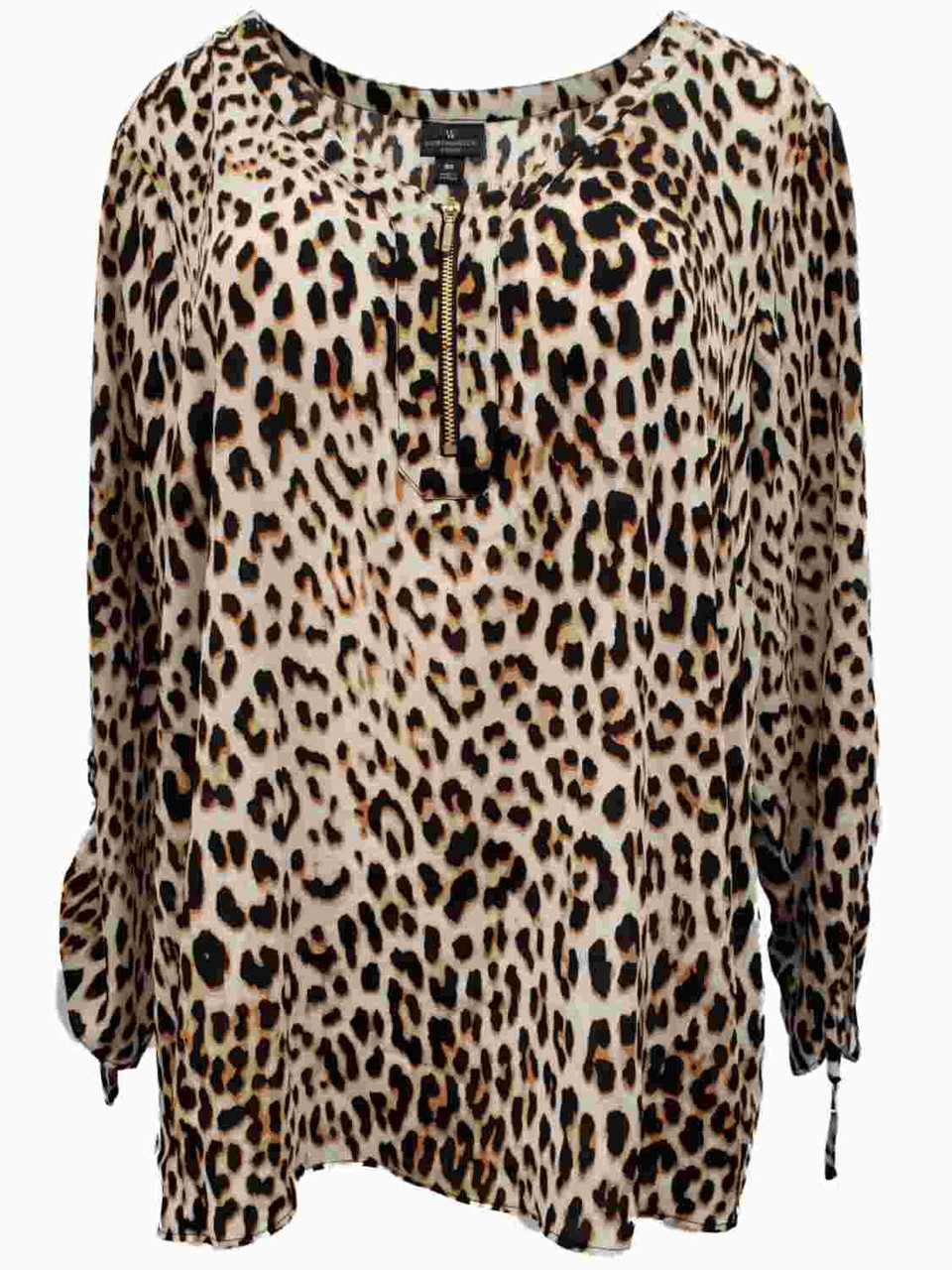 - Womens Plus Leopard Animal Print Zip Front Lightweight Shell Flowy Top Shirt