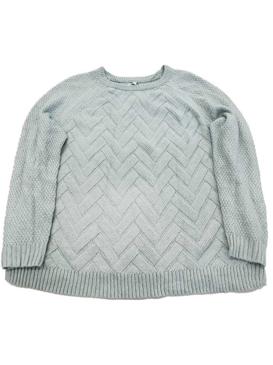 - Womens Plus Light Green Lattice Knit Soft Long Sleeve Warm Winter Sweater