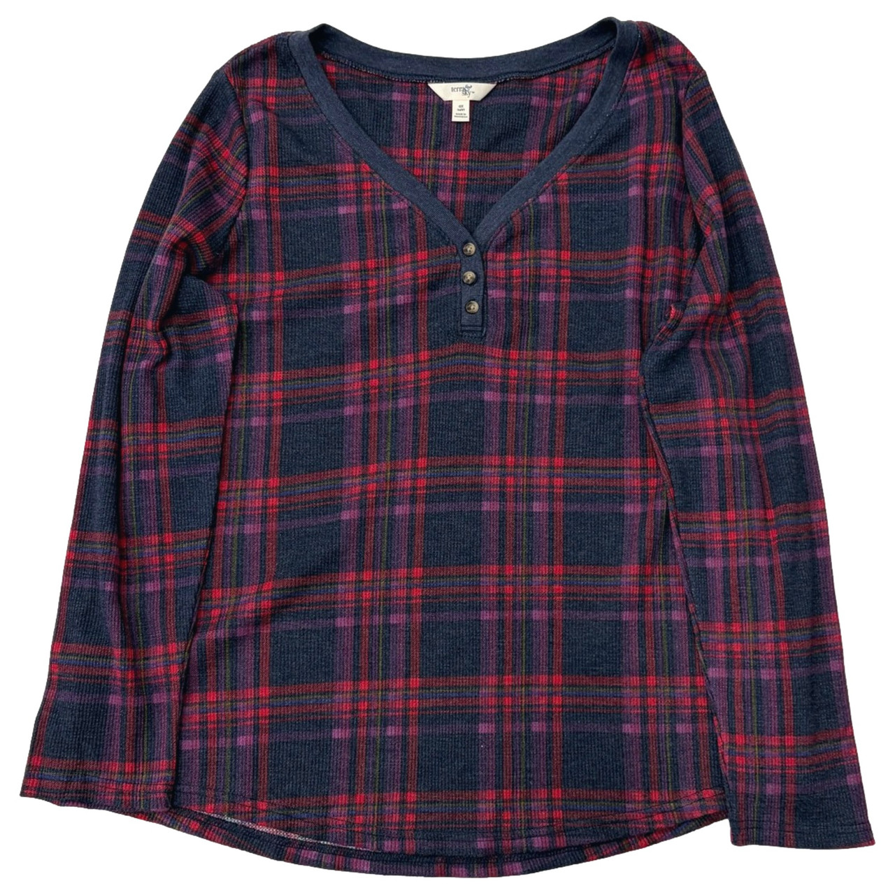 - Womens Plus Long Sleeve Purple Blue Red Plaid Pajama Sleep Top 0X