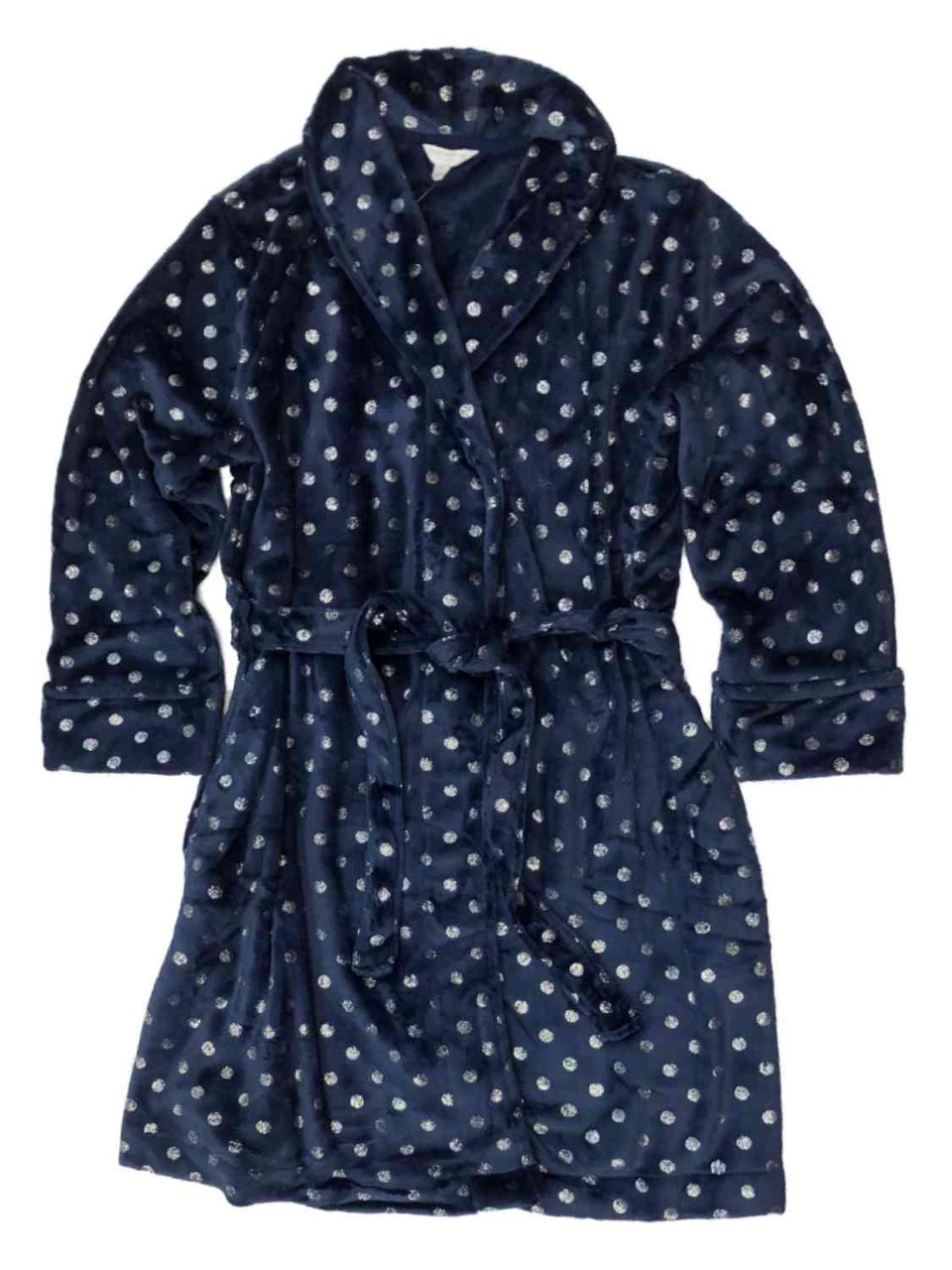 - Womens Plus Plush Navy Blue & Silver Polka Dot Bathrobe House Coat Bath Robe