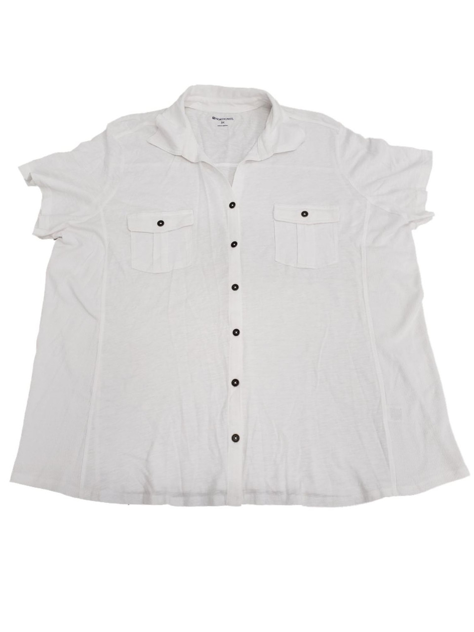 - Womens Plus Size Bright White Button Front Casual Short Sleeve Tee Shirt Top 3X