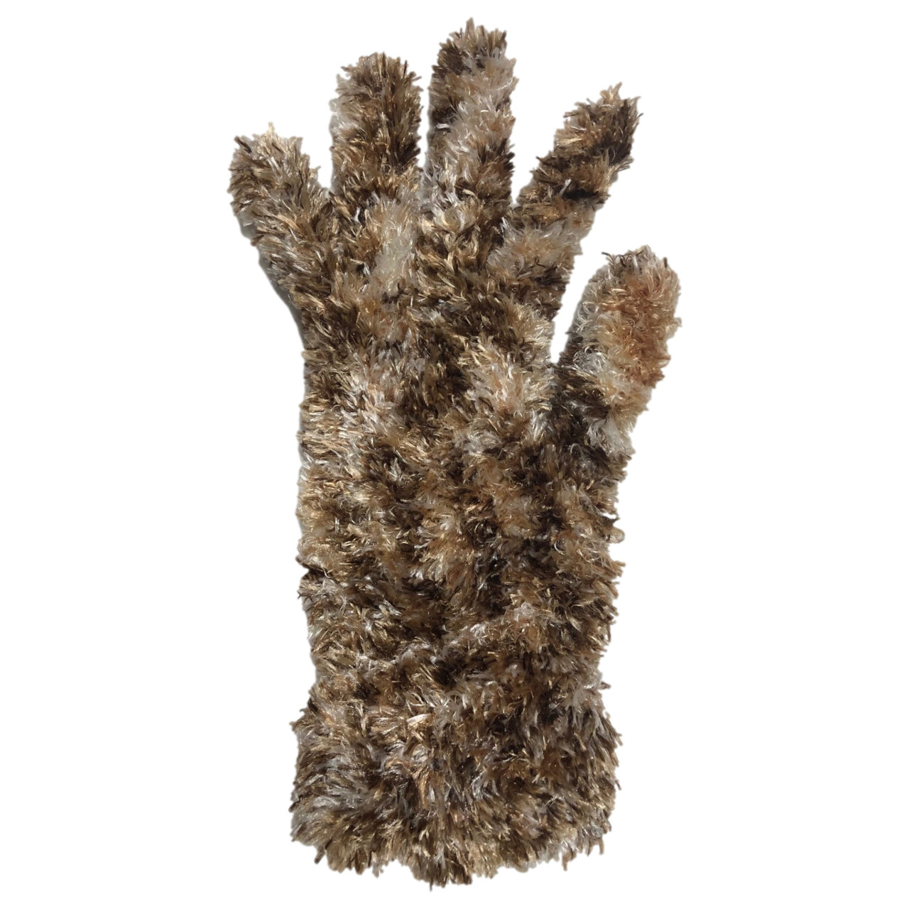 - Womens Plush Fuzzy Speckled Brown & Tan Knit Gloves