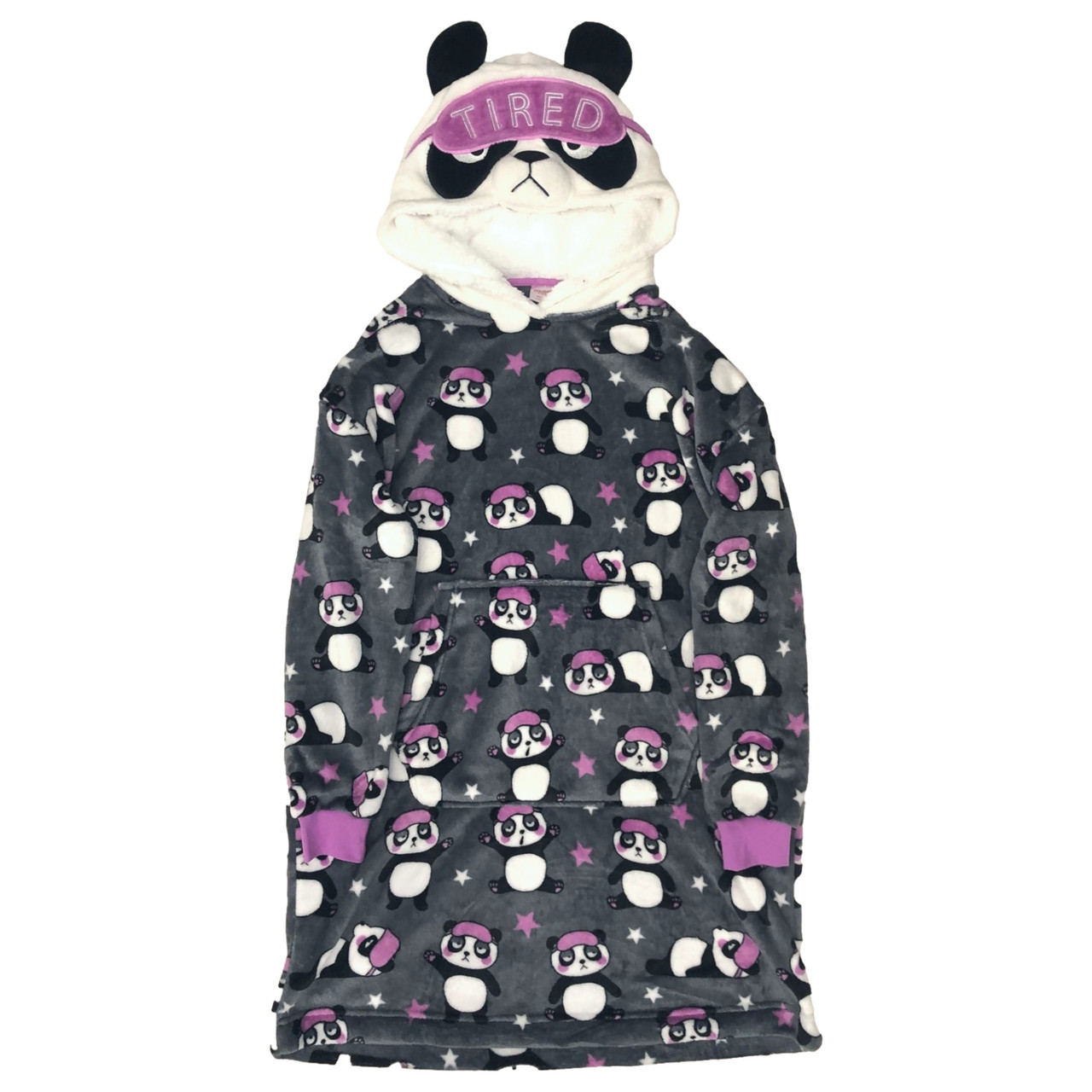 - Womens Plush Gray Hooded Panda Bear Nightgown Night Gown