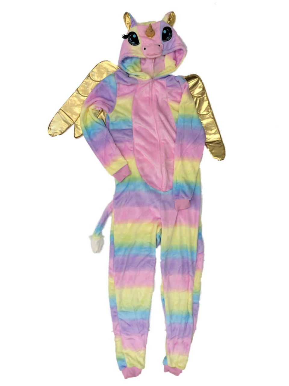 - Womens Plush Rainbow Unicorn Union Suit Sleeper Hoodie Pajamas