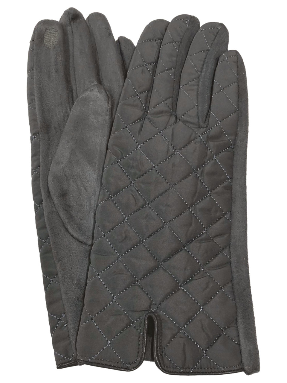 - Womens Quilted Gray Stretch Fit Texting & Tech Touchscreen Gloves