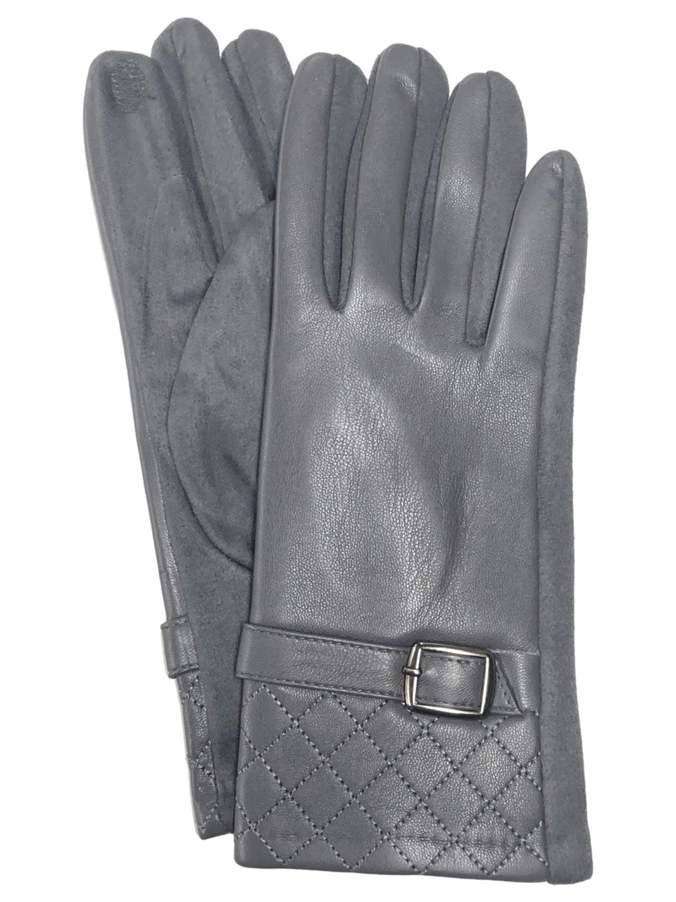 - Womens Quilted Gray Vegan Leather Stretch Fit Texting & Tech Touchscreen Gloves