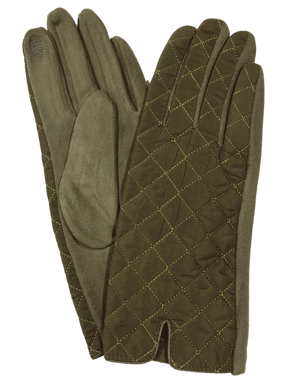 - Womens Quilted Olive Green Stretch Fit Texting & Tech Touchscreen Gloves