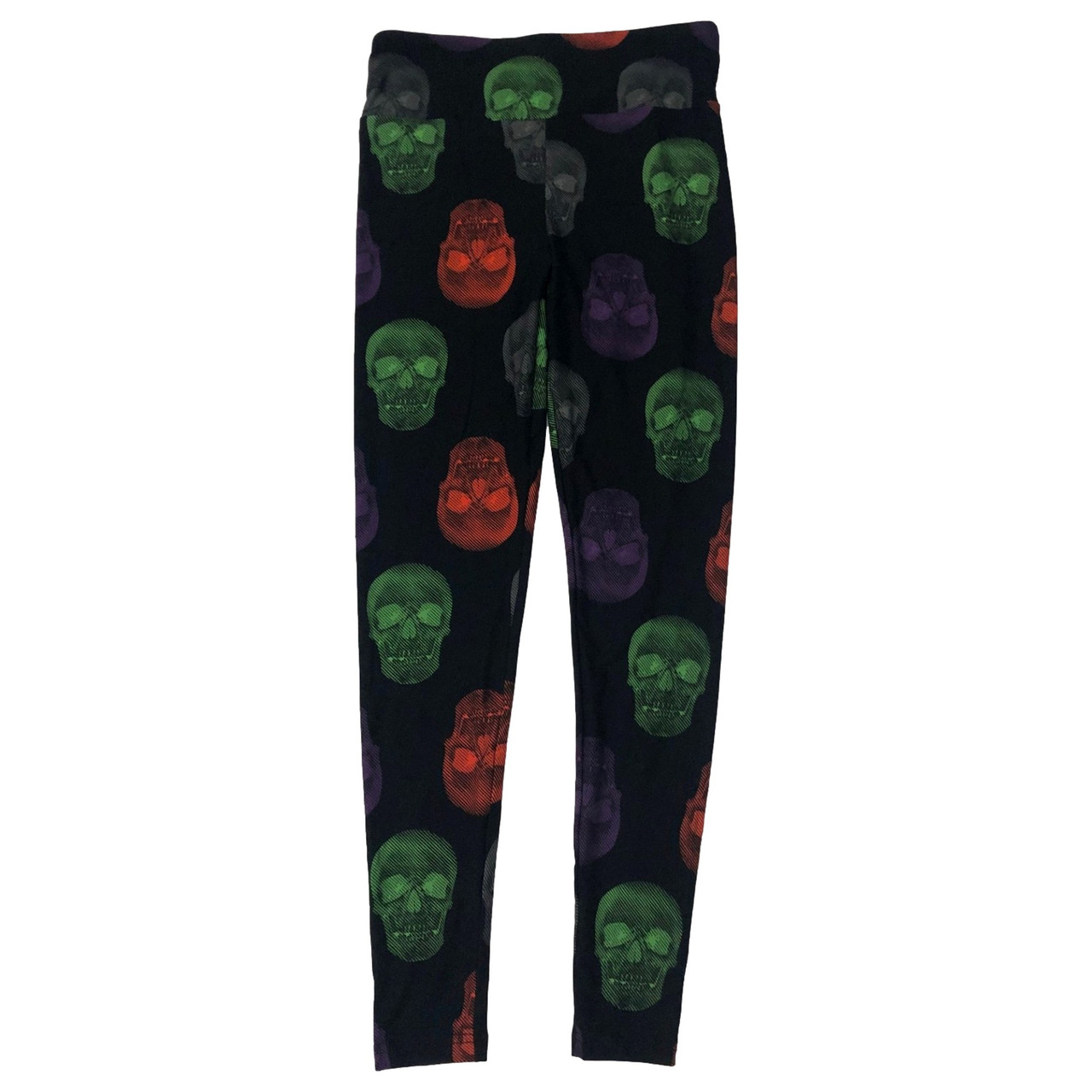 - Womens Rainbow Skull Print Halloween High Rise Leggings Stretch Pants