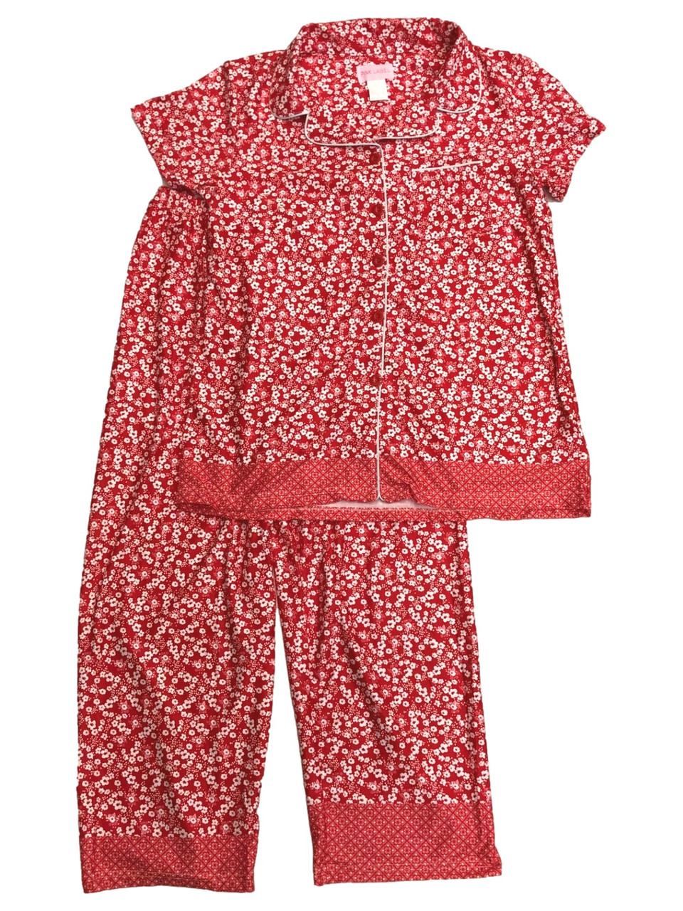 - Womens Red Floral Button Front Pajamas Lightweight Calico Sleep Set