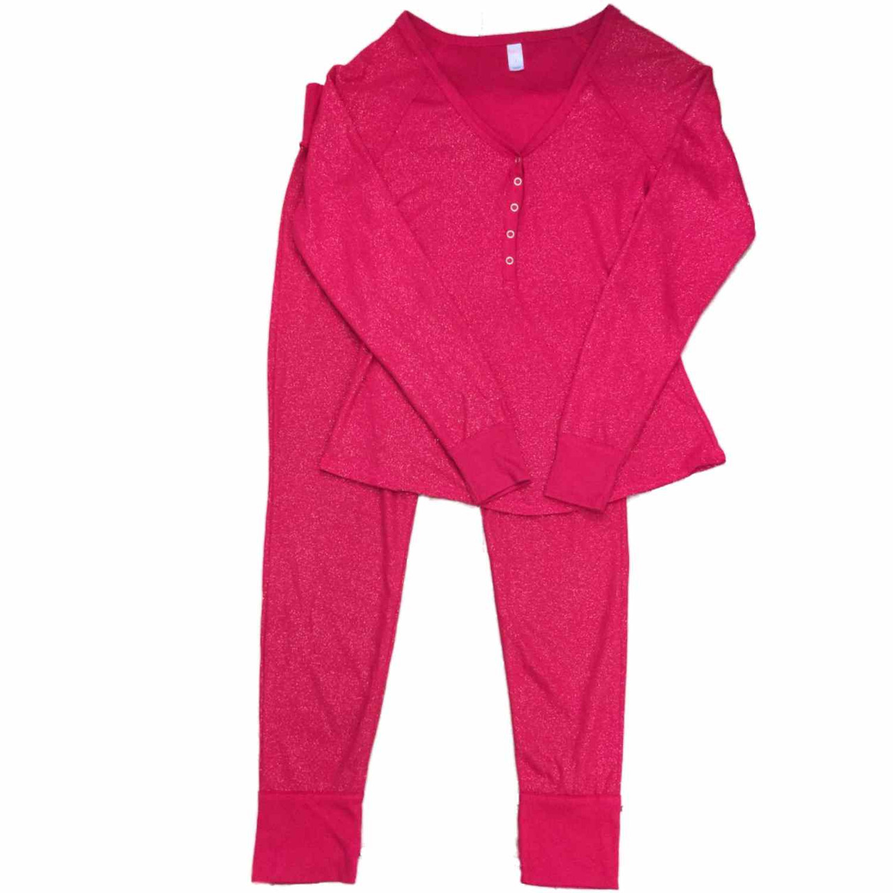 - Womens Red & Gold Flecked Pajamas Glitter Thermal Sleep Set