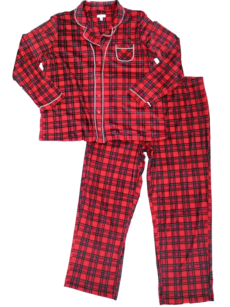 - Womens Red Green Blue Checker Plaid Fleece Pajamas Sleep Set 2X