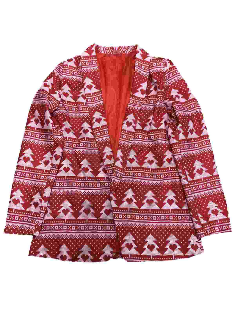 - Womens Red Heart Tree Christmas Holiday Suit Blazer Multi-color Light Up
