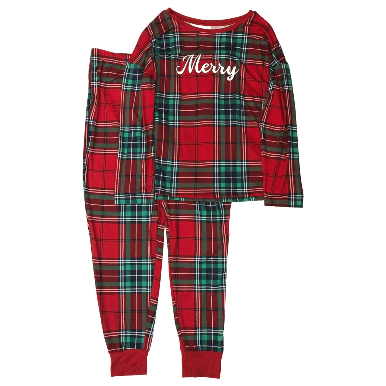 - Womens Red Plaid Merry Christmas Holiday Pajamas Joggers & Top Sleep Set