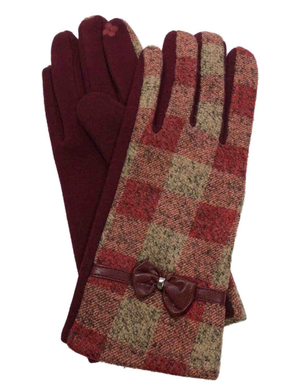 - Womens Red & Tan Plaid Bow Stretch Fit Texting & Tech Touchscreen Gloves