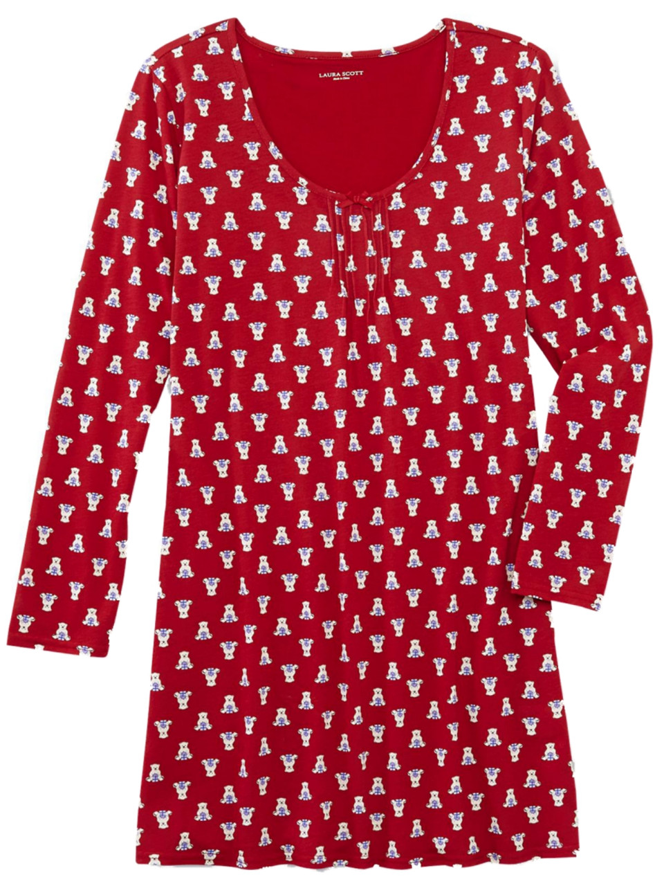 This pretty red teddy bear print nightgown is so cozy, you won't want to change in the morning!/p>