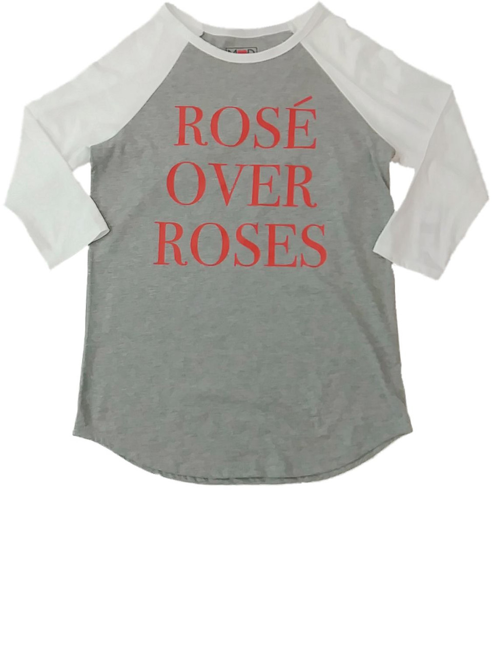 - Womens Rose Over Roses Gray Raglan Tee Shirt Valentine Holiday T-Shirt
