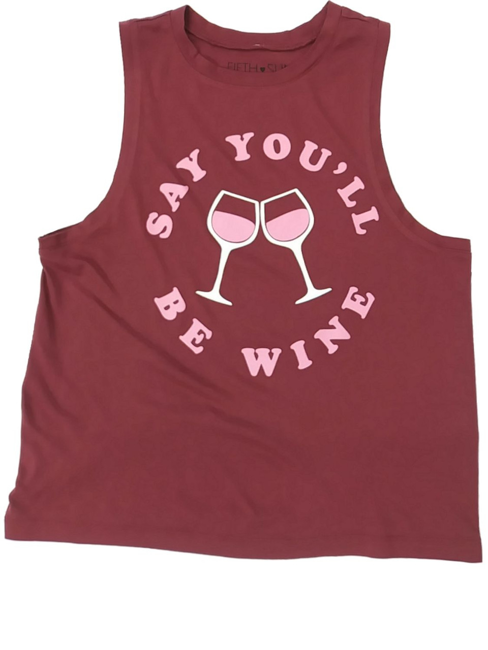 - Womens Say You'll Be Wine Burgundy Pink Tee Shirt Tank Valentine Holiday T-Shirt