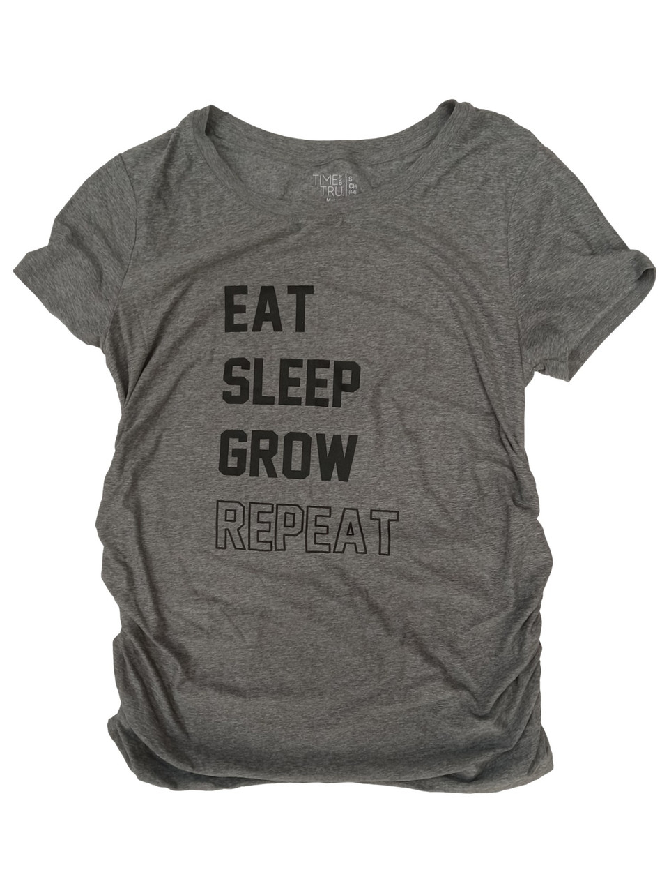 - Womens Short Sleeved Gray Eat Sleep Grow Maternity Tee Shirt T-Shirt Small