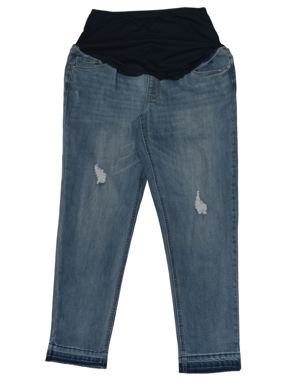 - Womens Skinny Blue Denim Comfort Belly Distressed Maternity Jeans