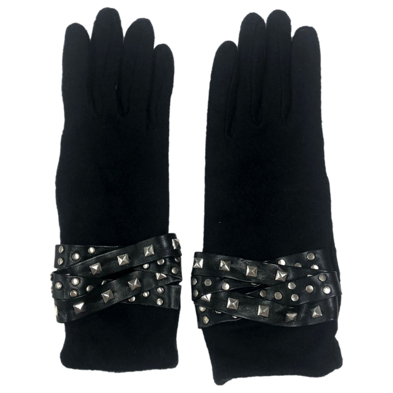 - Womens Sleek Soft Black Studded Leather Trim Gloves Biker Look