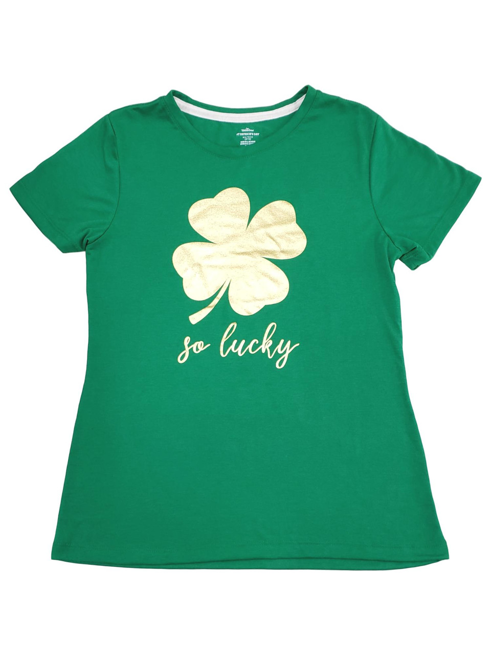 - Womens So Lucky Gold Foil Clover St. Patrick's Day T-Shirt Shirt Top