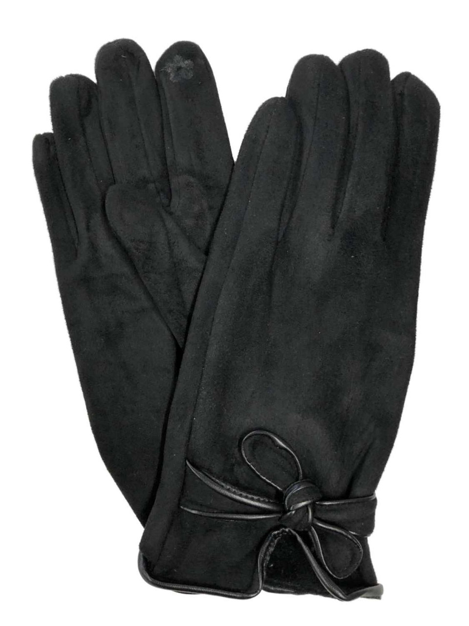 - Womens Soft Black Bow Stretch Fit Texting & Tech Touchscreen Driving Gloves