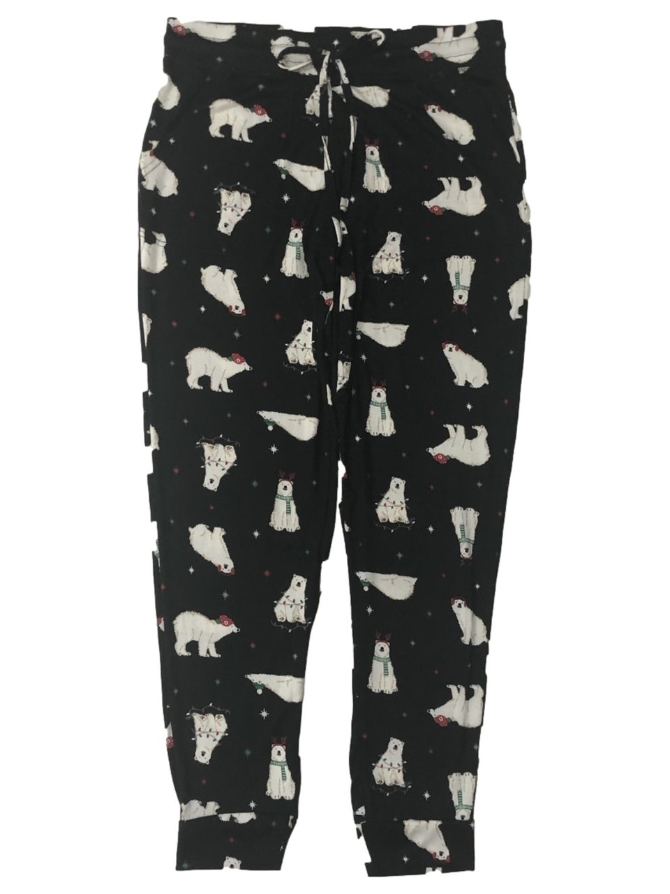 - Womens Soft Black Polar Bear Holiday Joggers Sleep Pants Pajama Bottoms