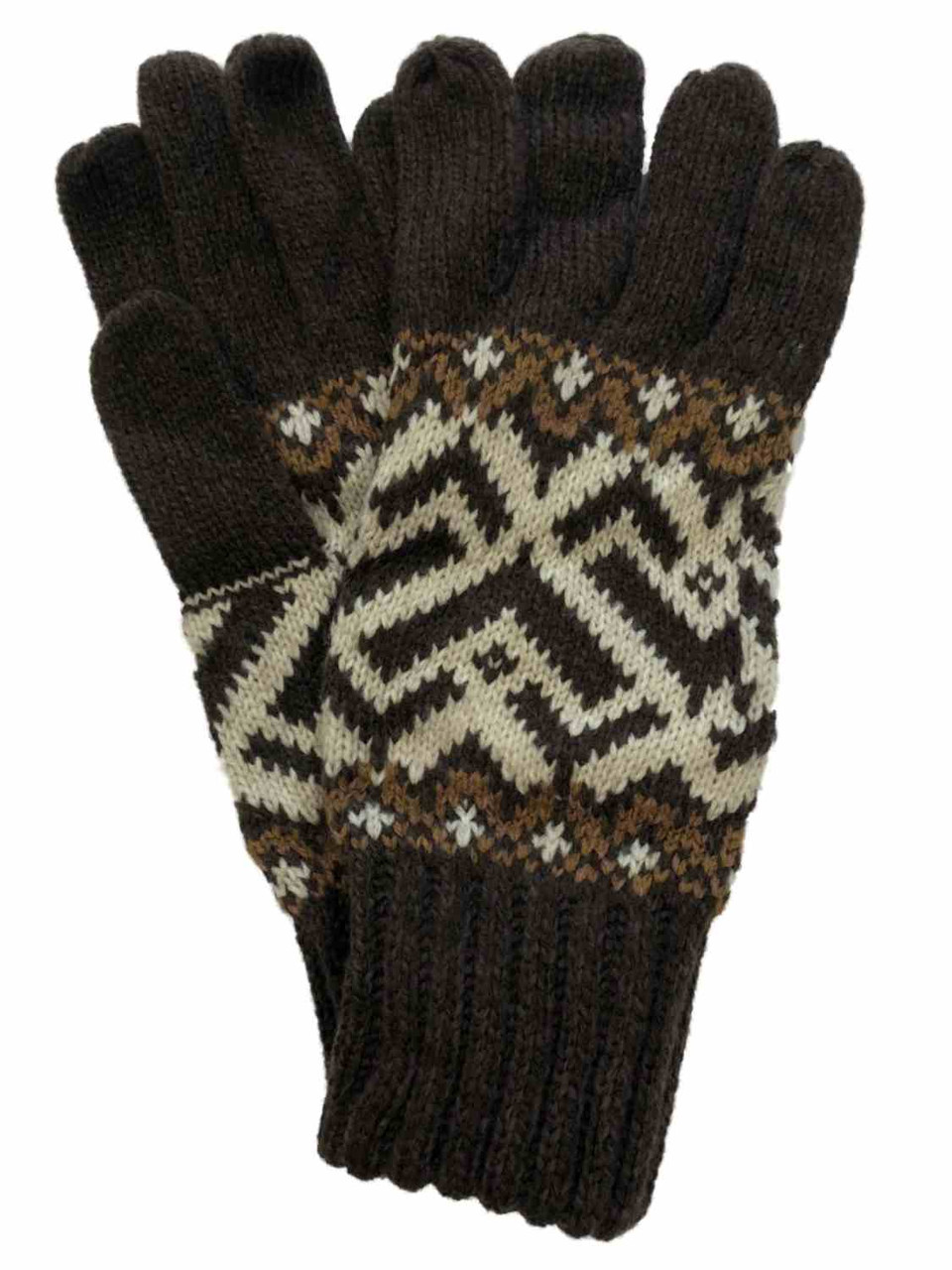 - Womens Soft Brown & Tan Geometric Print Knit Winter Gloves