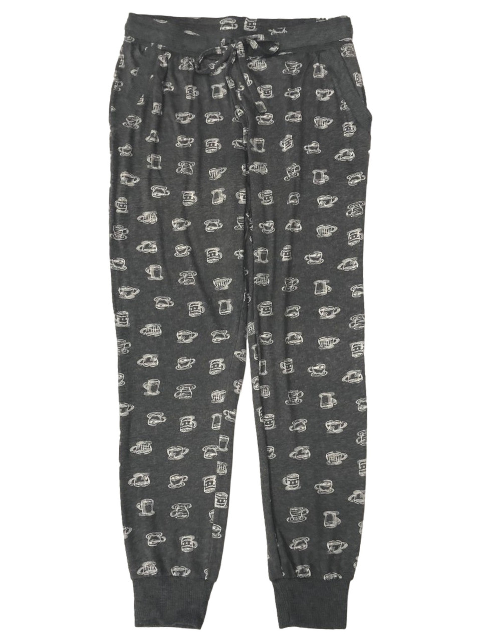 - Womens Soft Gray Coffee & Tea Print Joggers Sleep Pants Pajama Bottoms