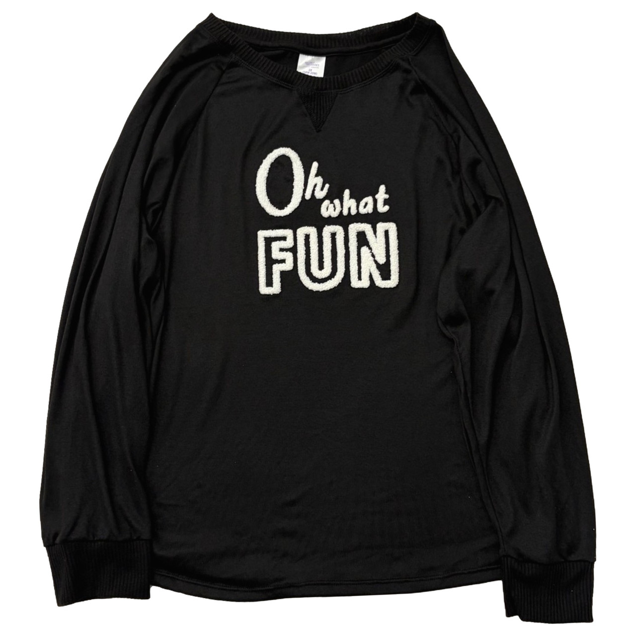 This soft & cozy lightweight black "Oh what fun" Christmas holiday themed sweatshirt style pajama top is sure to be a favorite! It can also been worn as a regular sweatshirt.
