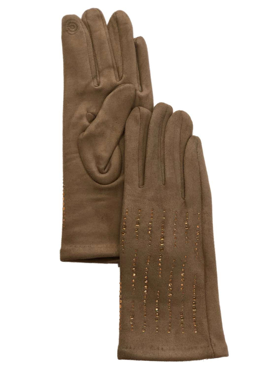 - Womens Soft Tan Rhinestone Stretch Fit Texting & Tech Touchscreen Gloves