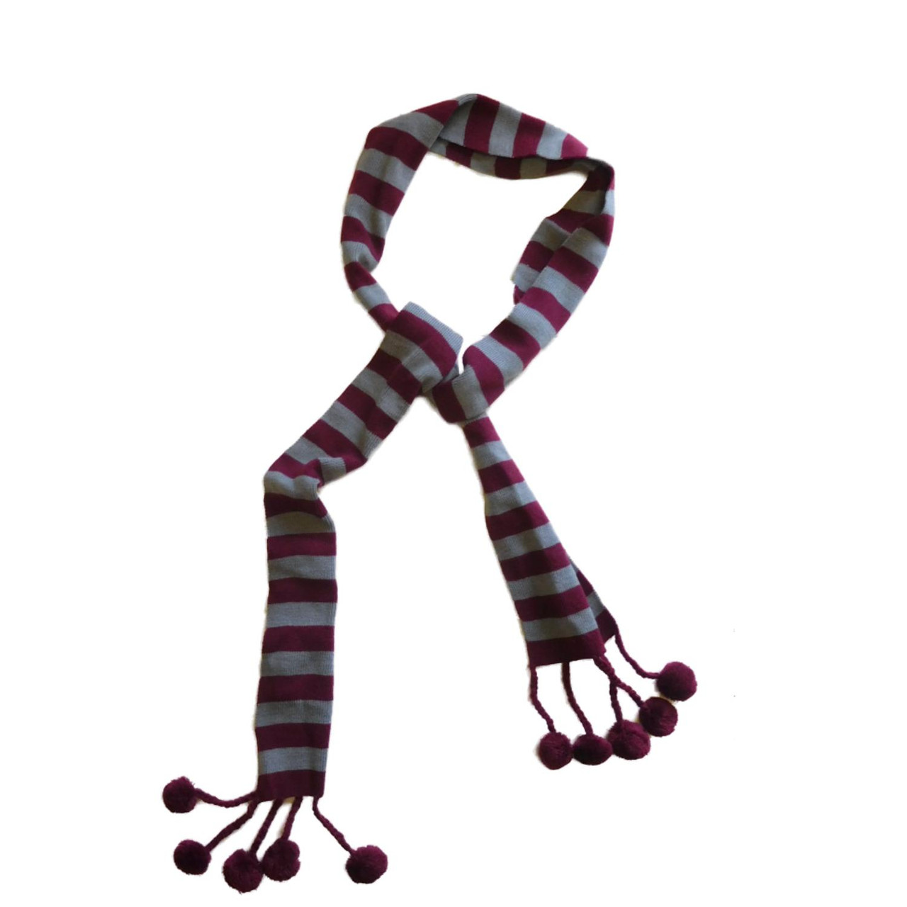 - Womens Stripe Knit Maroon Pom Pom Acrylic Winter Neck Scarf