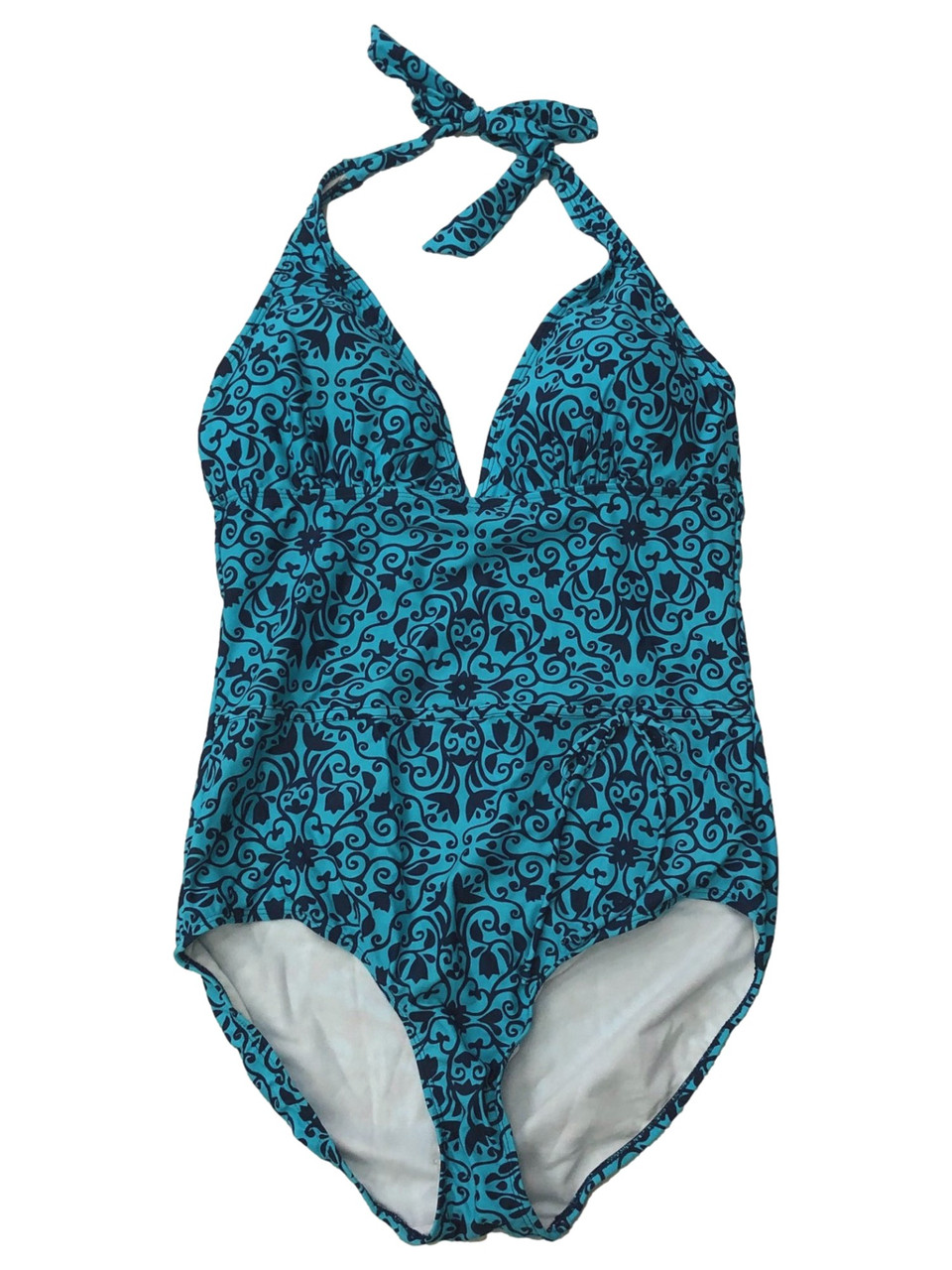 - Womens Teal & Blue Floral Paisley 1pc Halter Swimming Swim Suit Size 14