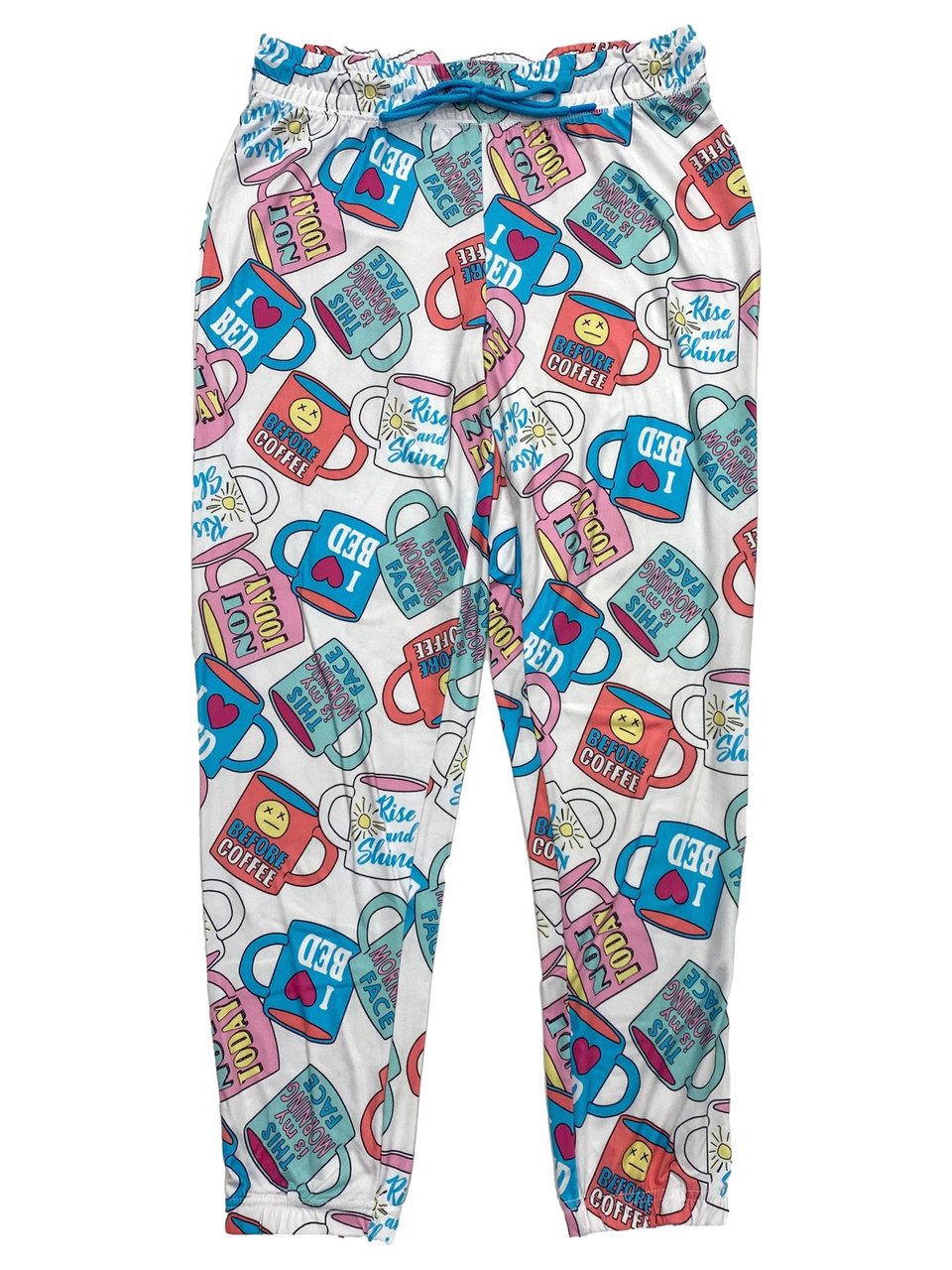 - Womens White Coffee Cup Rise & Shine Joggers Sleep Pants Pajama Bottoms