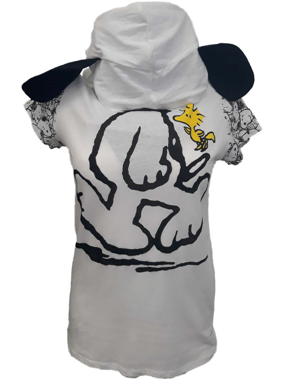 - Womens White Peanut Snoopy Woodstock Puppy Ear Hooded Halloween T-Shirt