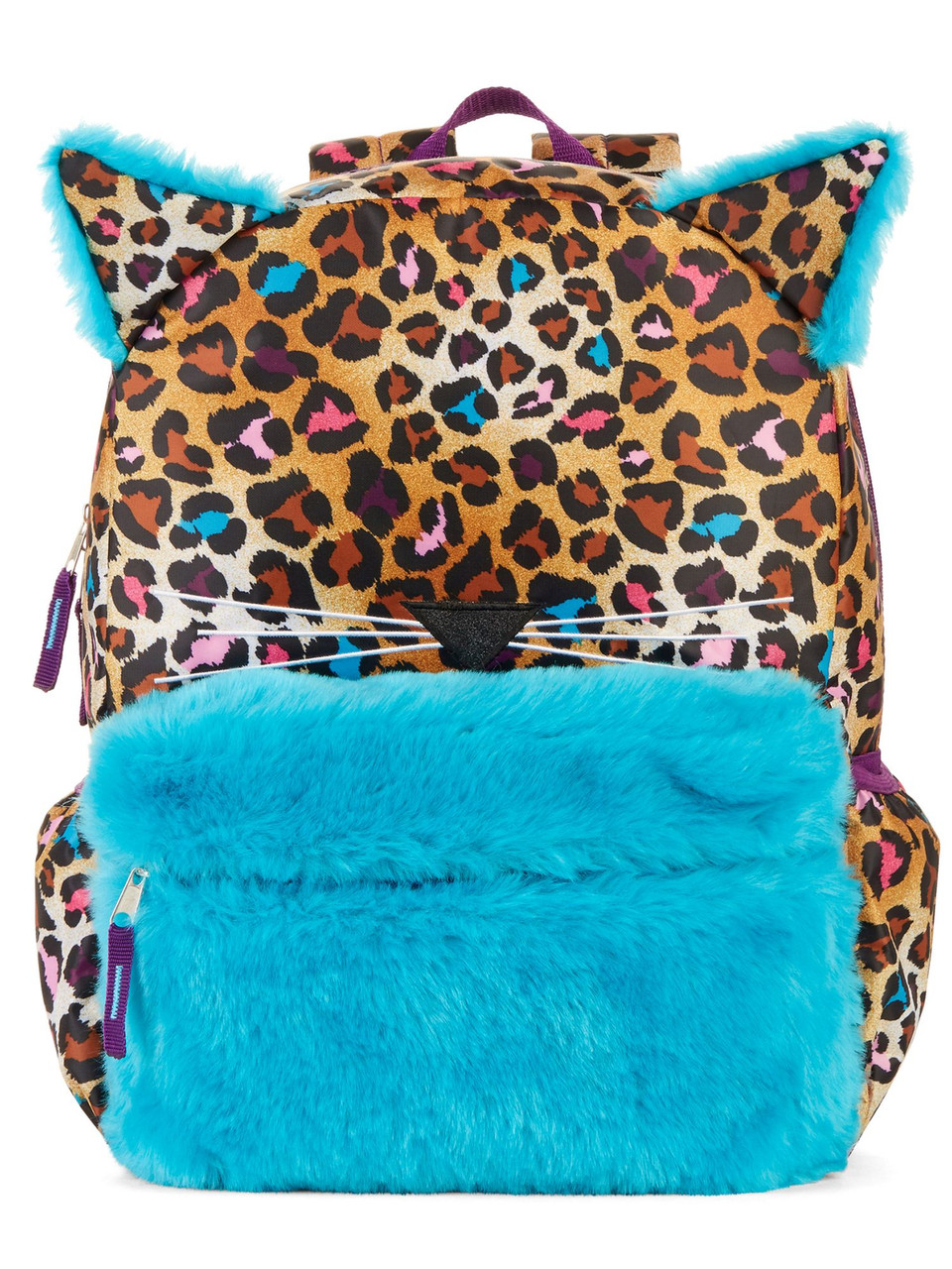 - Wonder Nation Cheetah Meow Kitty Cat 16" Backpack, Fur Accent School Bookbag