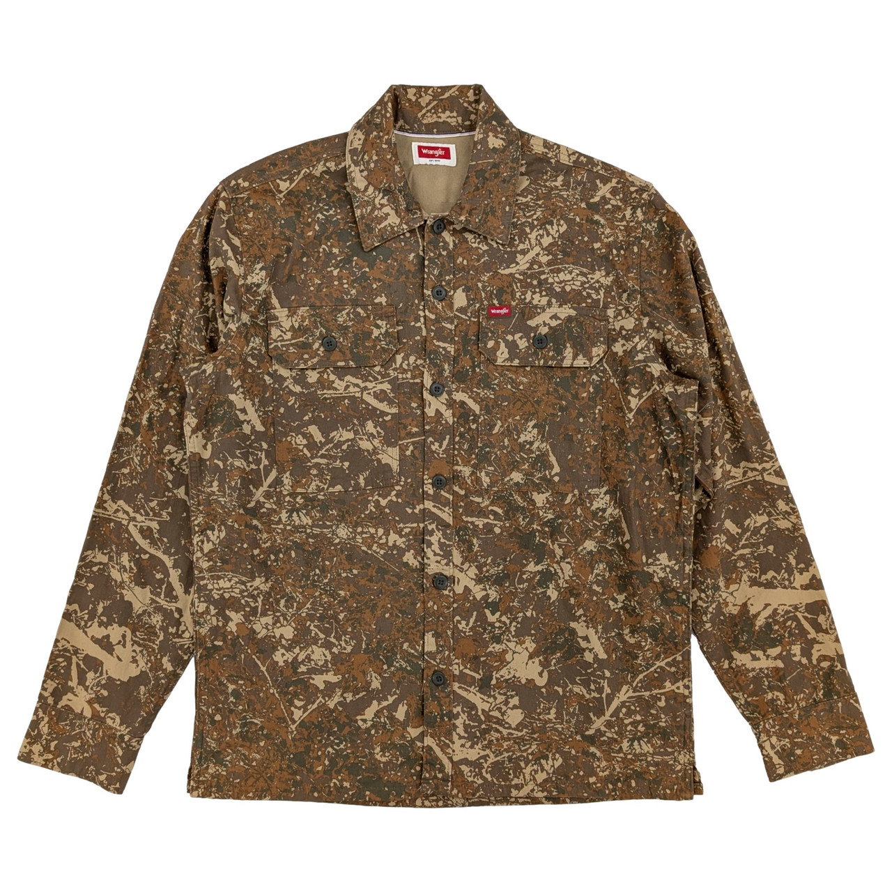 - Wrangler Mens Brown Camouflage Relaxed Fit Long Sleeve Woven Shirt