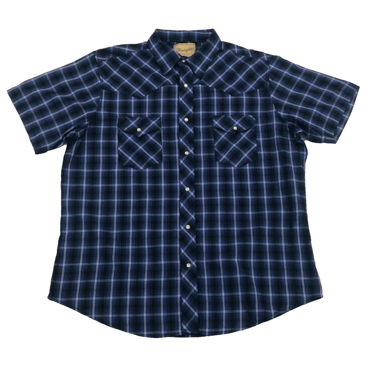 - Wrangler Mens Midnight Blue Plaid Short Sleeve Western Shirt Easy Care