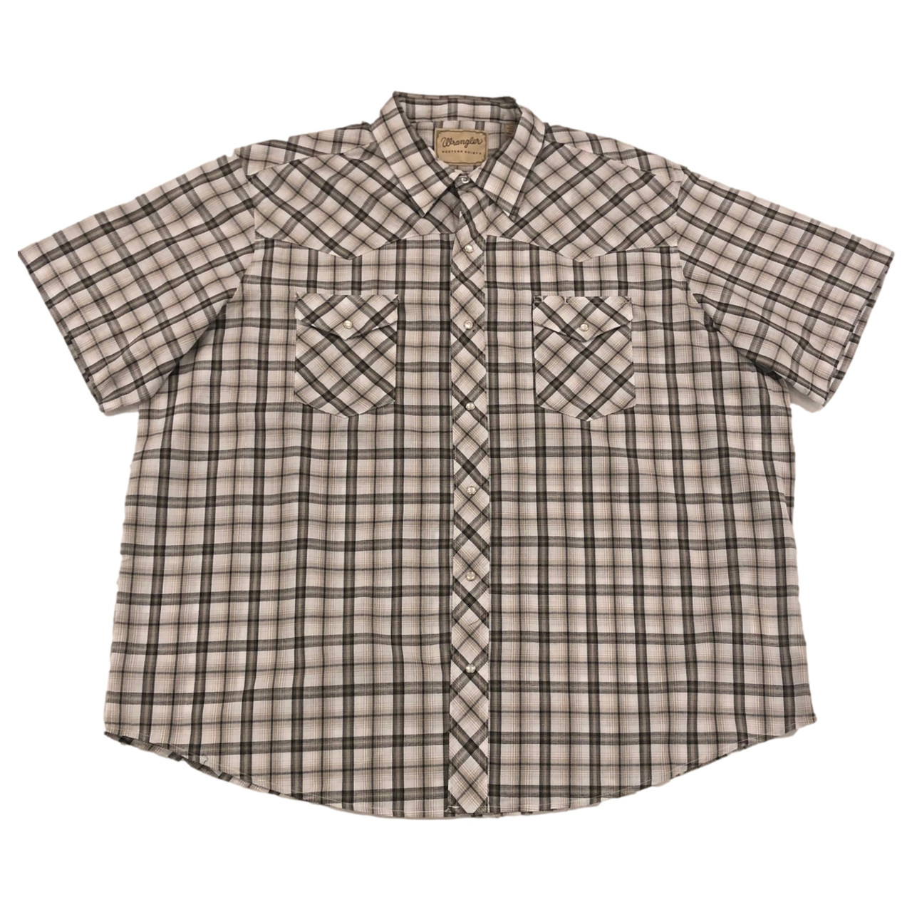- Wrangler Mens Tan & White Plaid Short Sleeve Western Shirt Easy Care