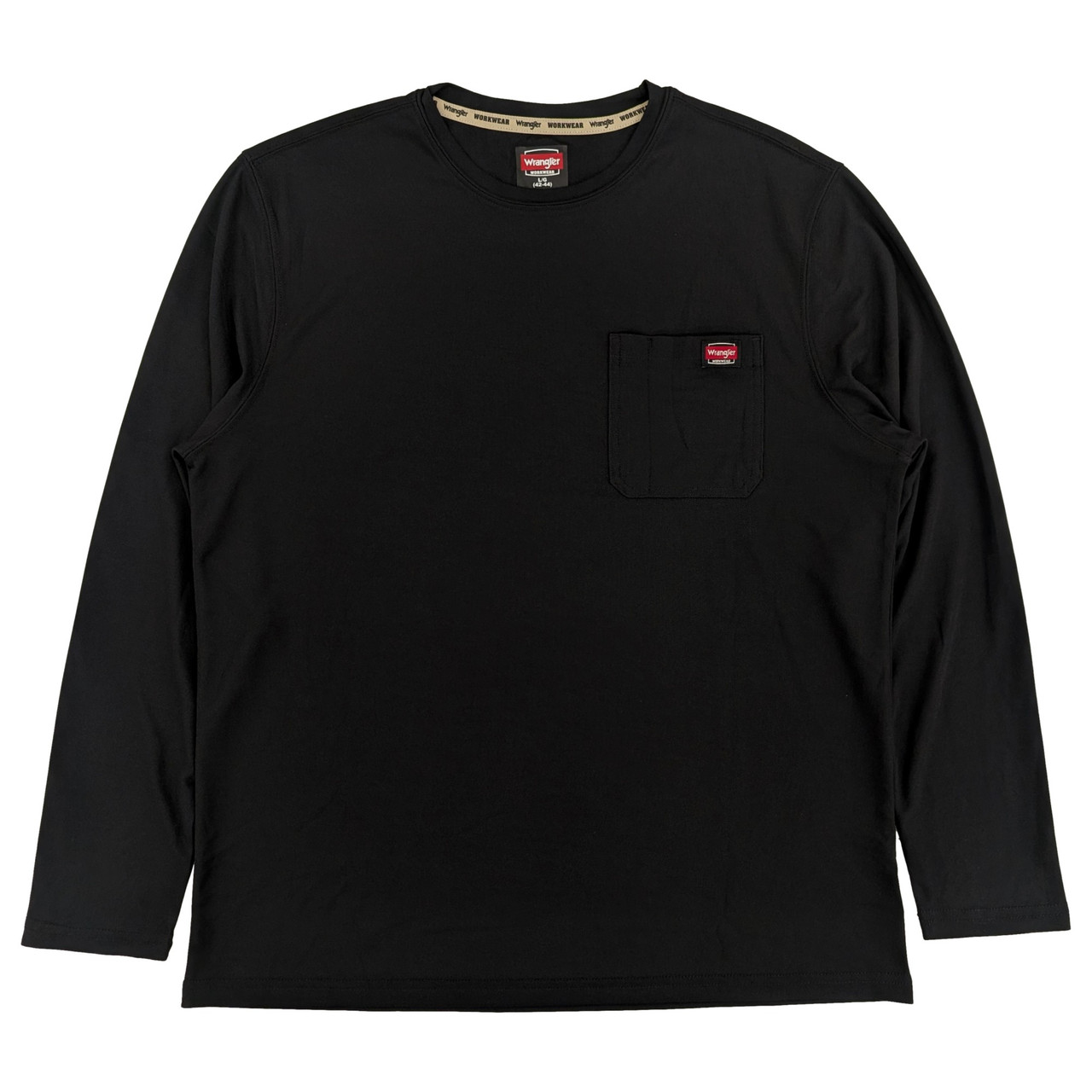 - Wrangler Workwear Mens Black Long Sleeve Performance Pen Pocket Tee