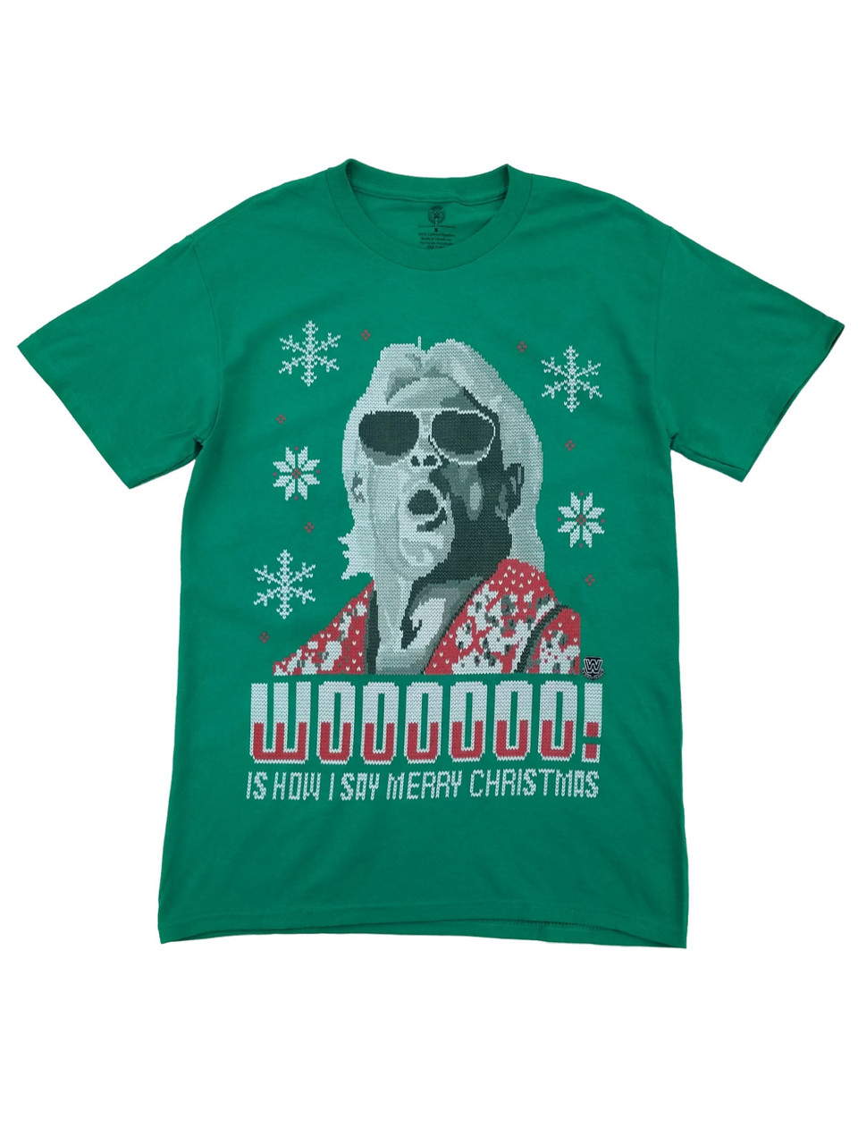 - WWE Mens Green Rick Flair Woo! Merry Christmas Holiday T-Shirt