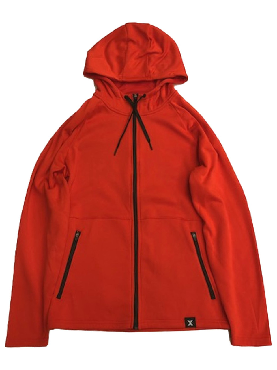 You will love the cozy feel of this quality made Xersion "Flame scarlet" bright orange wicking quick dry performance fleece zip front hoodie sweatshirt with zippered pockets!