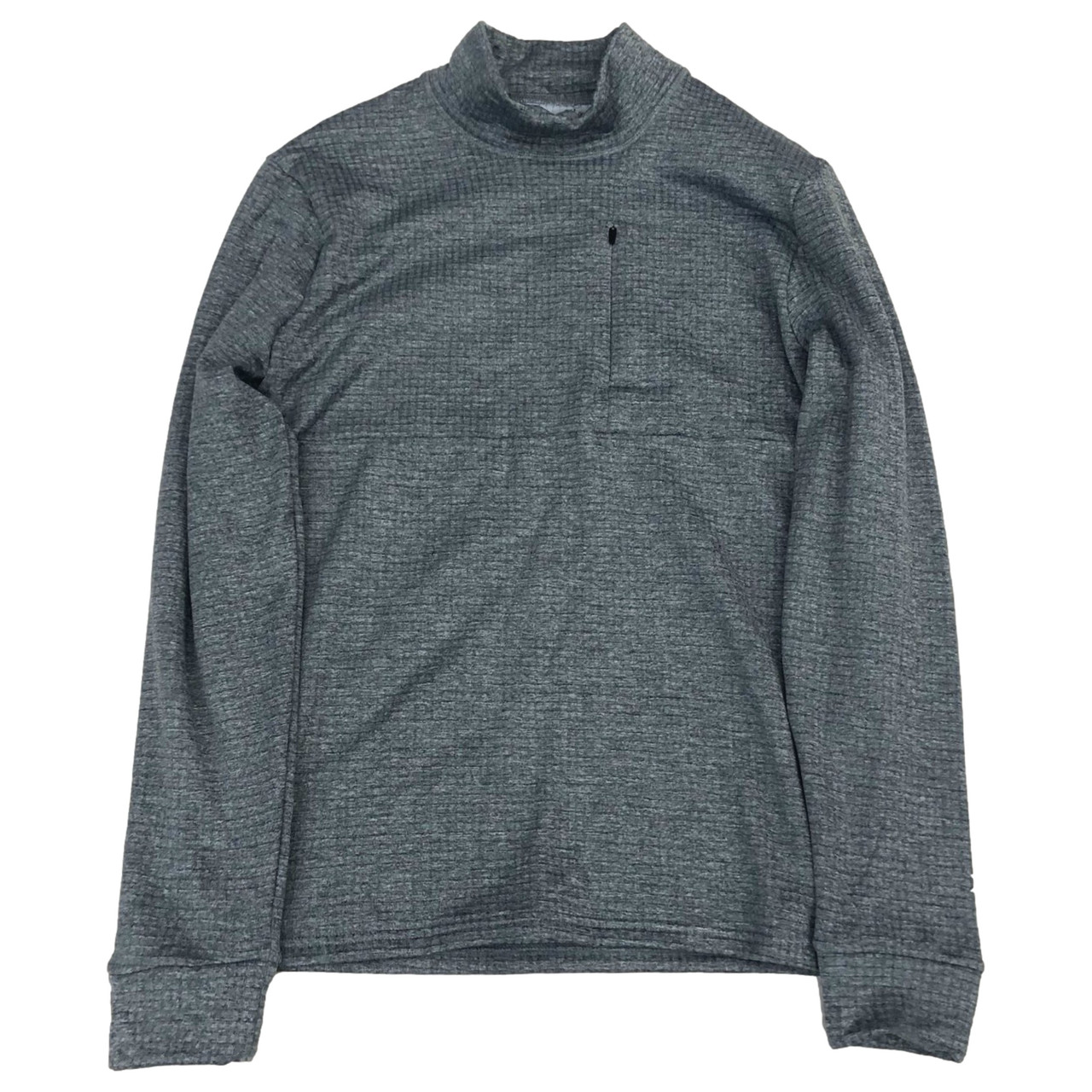 You will love the cozy feel of this quality made long sleeve Xersion pale blue gray mock neck athletic shirt with warm waffle knit fleece lining & zippered tech pocket!